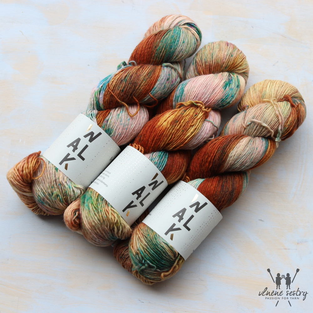 Luxusní ručně barvená příze od německé firmy Walk - málo stáčená jednonitka, nadýchaná a hebká.