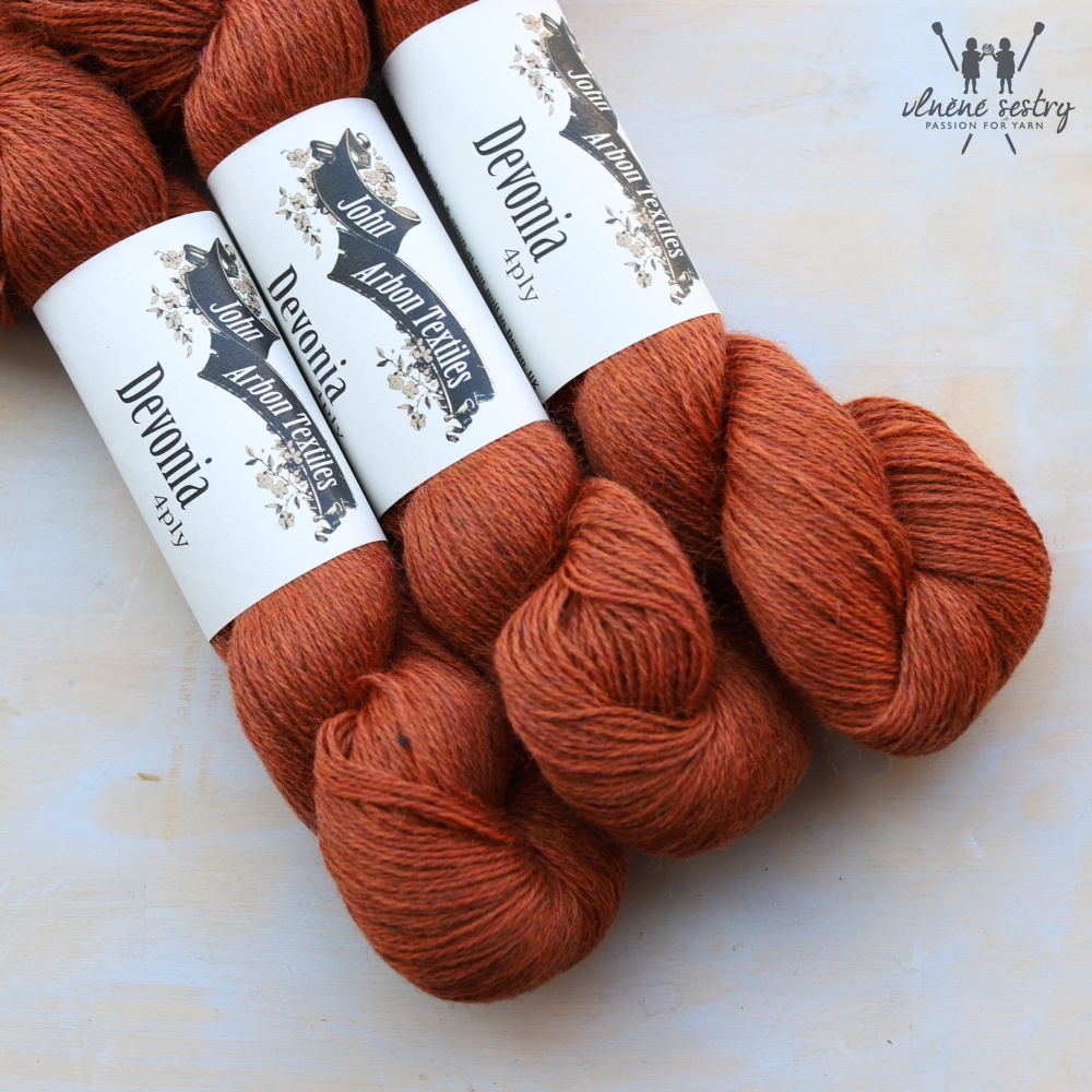Luxusní příze od britské firmy John Arbon Textiles, která zpracovává lokální britská plemena oveček. Devonia je mixem tří druhů - Exmoor Blueface, Bluefaced Leicester a Wensleydal.