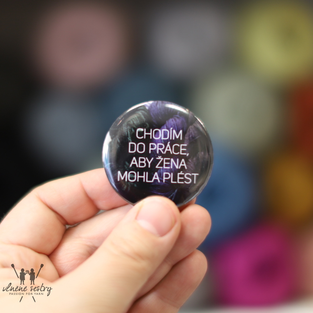 Placka "Chodím do práce, aby žena mohla plést"Skladem > 20 ks25 Kč/ ks21 Kč bez DPH