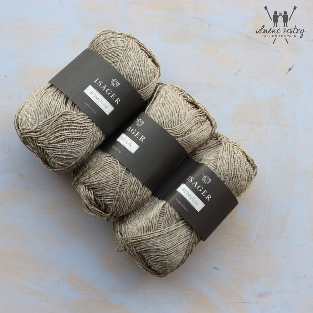 Luxusní příze dánské firmy Isager. BOMULIN je jemná „letní příze“ ze směsi 65 % bavlny a 35 % lnu. Příze je lehká a krásná a skvěle se hodí na dětské oděvy nebo lehké letní halenky. Při pletení v kombinaci s jinými přízemi dodává pletenině krásnou strukturu. Bomulin často používáme společně s dalšími našimi letními přízemi, ale stejně dobře funguje i v kombinaci s vlněnými přízemi.