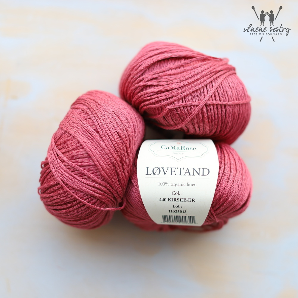 Løvetand je kvalitní příze od dánské rodinné firmy CaMaRose. Příze je vyrobená z jemné nitky, která je spletená do stužky. Je to jemná příze vhodná na všechny typy letních úpletů i na háčkování např. kabelek. Len může působit při zpracování jako tuhý, ale nošením měkne.