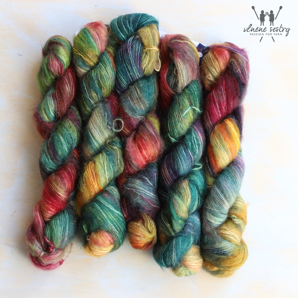Krásná ručně barvená mohérová příze uruguayské firmy Malabrigo vhodná na pletení šál, šátků či jako příplet.