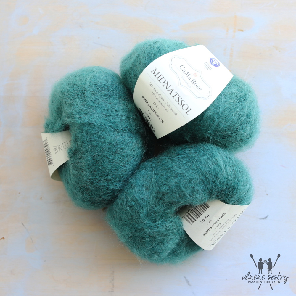 Midnatssol je úžasnou směsí 54% baby alpaky, 10% merino vlny (mulesing free) a 36% tencelu. Pro CaMaRose je příze spřádána v rodinné italské přádelně, s ohledem na dobré zacházení jak s životním prostředím, tak se zvířaty. Merino vlna je z chovů bez "mulesingu", přírodní vlánko "tencel" (rozdrcené dřevité vlákno) je použito jako jemné nosící vlákno, na kterém je alpaca a merino vlna.